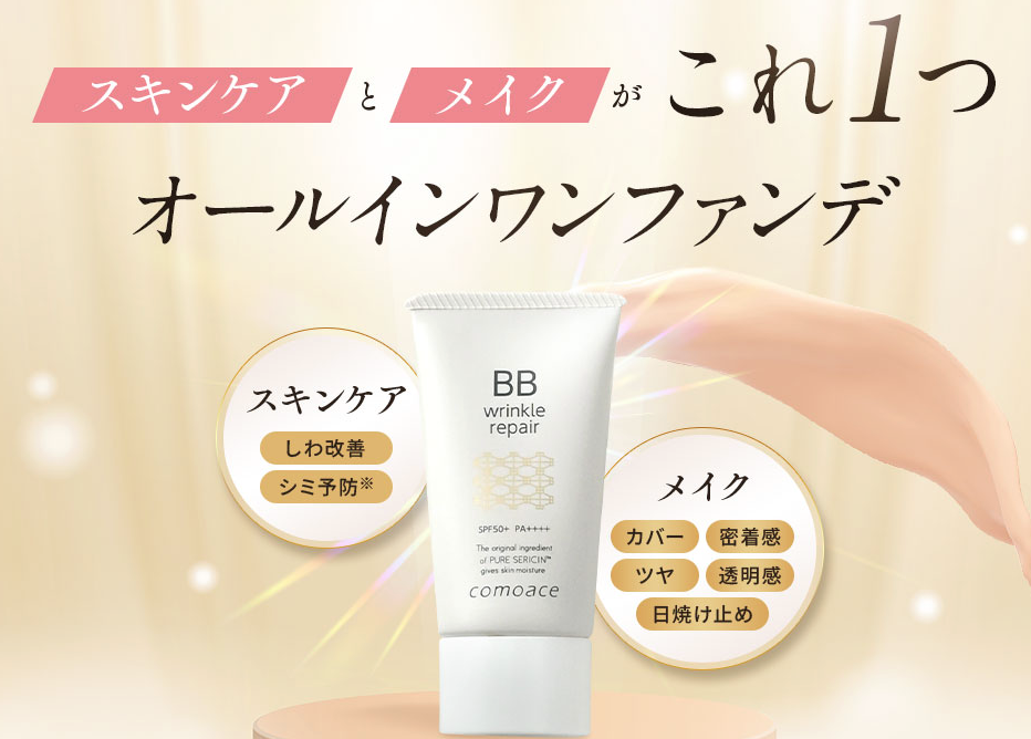 近年、「しわ改善ができるBBクリーム」として注目を集めているのが、コモエースの薬用BBクリーム「リンクルリペアBB」。